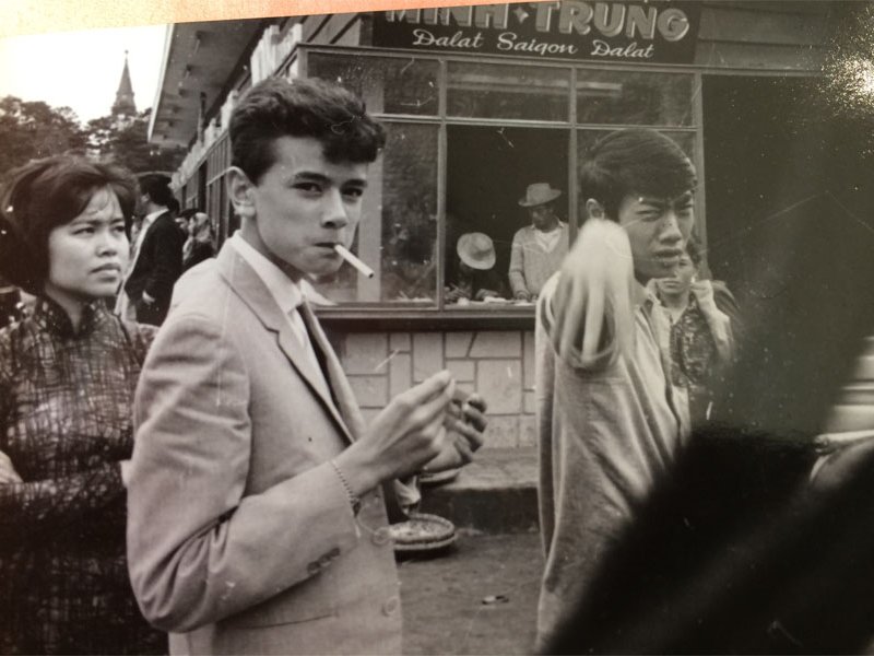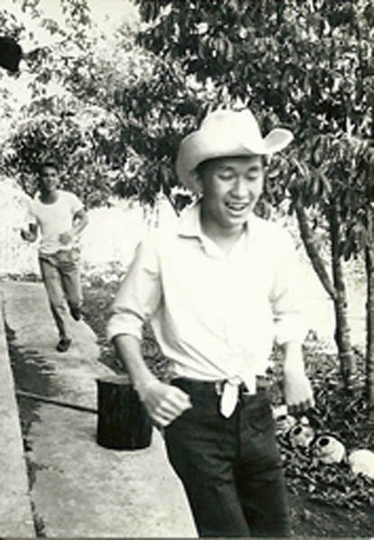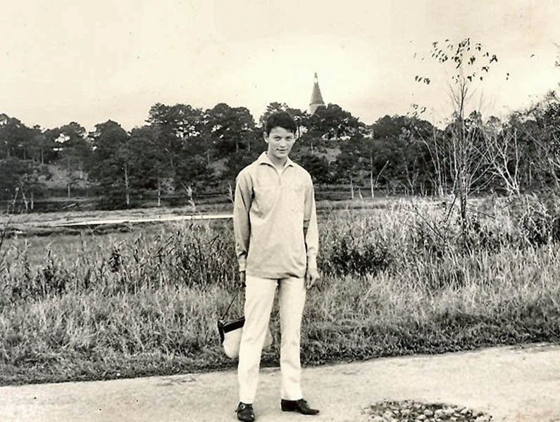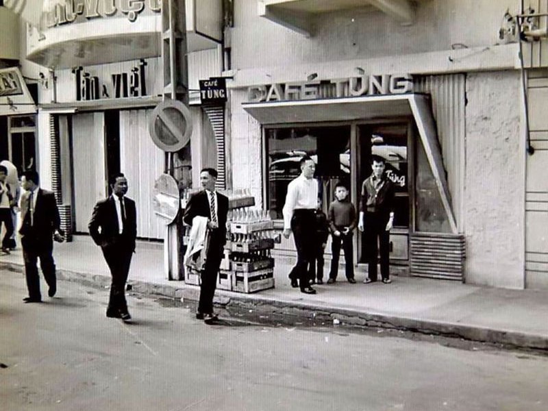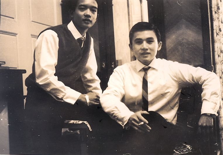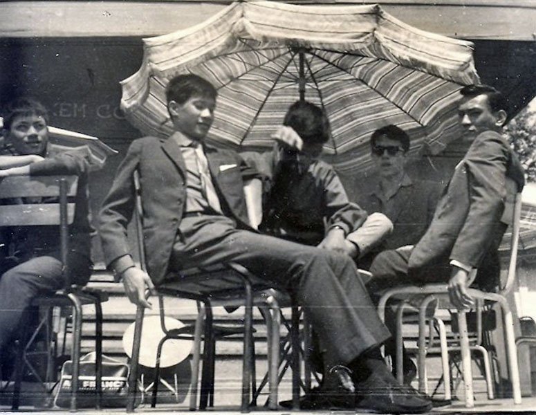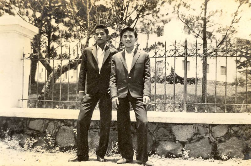 Ðặng Cao Trâm (promo 64) et Lê Thiệu Hùng, chụp trong Ty Ngân Khố, phía sau Khách sạn Palace