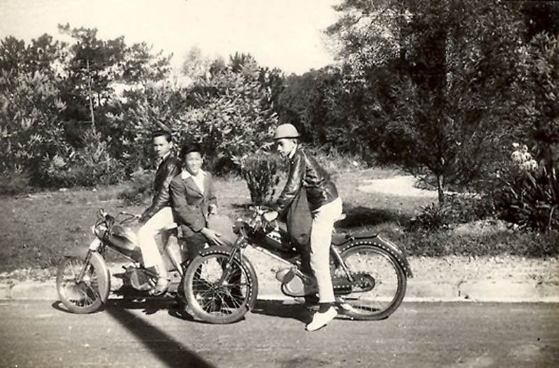 Debout : Alphonse Bùi (2ème à droite) ; sur la voiture : Robert Arpage (2ème plus haut)