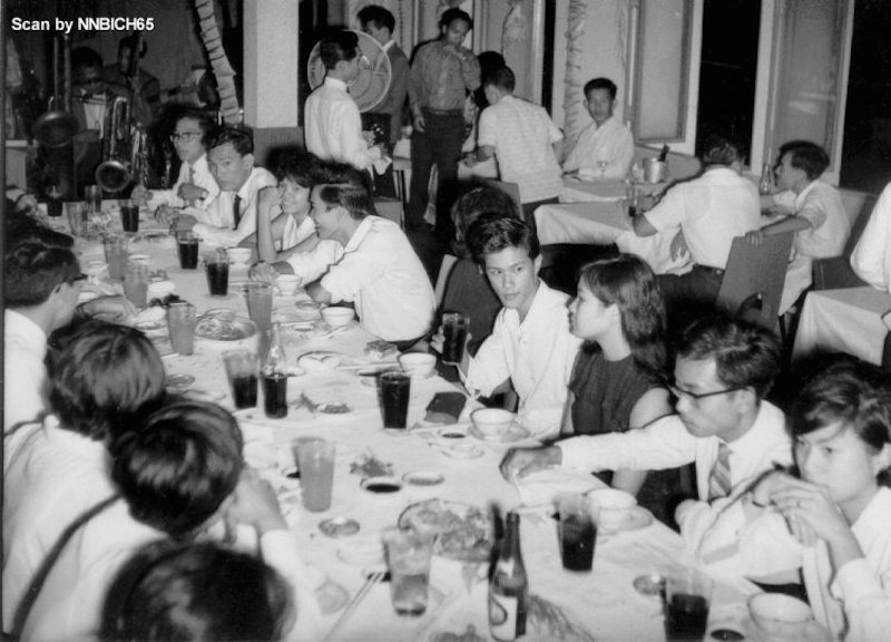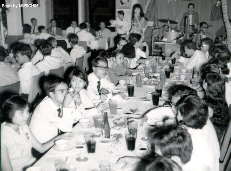 24.09.1964 : Le banquet d'adieu a eu lieu dans un grand restaurant de Cho Lon. Au fond, la chanteuse et l'orchestre
